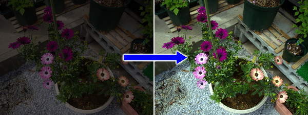 露出不足で黒つぶれした写真や、露出過多で白飛びした写真の補正に使える機能です。